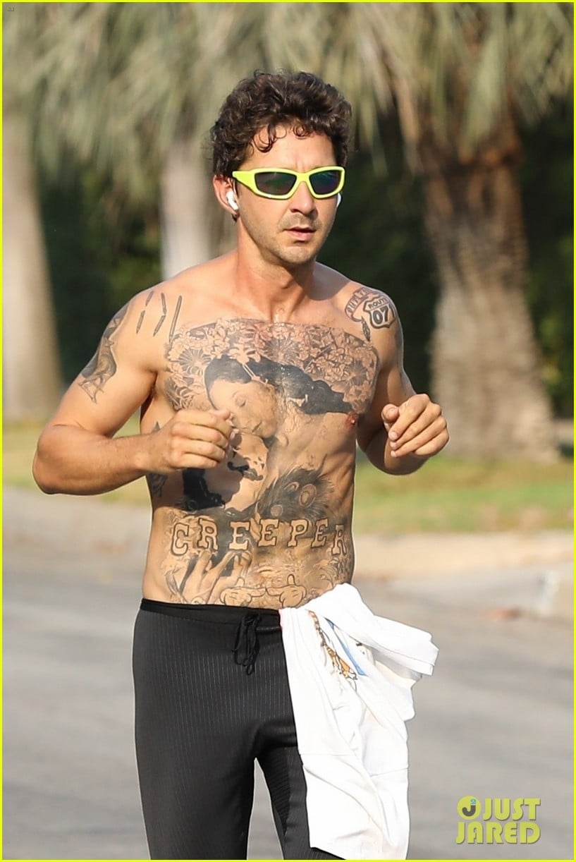 Shia LaBeouf Goes for a Shirtless Jog, Puts All His Tattoos on Display!: Photo 4476438 | Shia .... Shia labeouf the outfit he's wearing: I stumbled across these paparazzi pictures of shirtless shia, and i really didn't know he was covered in tats. Best known as the former lead in the transformers franchise, labeouf first came to the attention of mass audiences when he starred in the kid friendly flick holes after having starred for several seasons on the disney tv show even. Shia grew up in echopark and came back here to give back to his community by getting this tattoo, ramirez wrote on instagram. See more of shia labeouf on facebook. Shia labeouf was spotted showing a massive creeper chest tattoo and getting to work on cleaning a black impala while on set of his latest movie, the tax. 119,656 likes · 12,229 talking about this. I've been open about it, written about it, and fully accepted myself as a devout lover of shia labeouf. 2020 film independent spirit awards why it works: The official facebook fan page for actor shia labeouf. · posted on apr 1, 2020. Clarifying the reasoning behind the tattoo work, artist bryan ramirez took to instagram to offer another look at shia's new chest piece. David ayer reveals shia labeouf got real tattoos for 'the tax collector' role: And before you go on thinking this type of method acting is beyond crazy, know that labeouf's new tattoo isn't entirely for tax collector. Shia labeouf, los angeles, ca.
